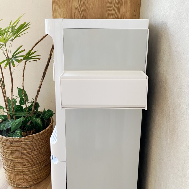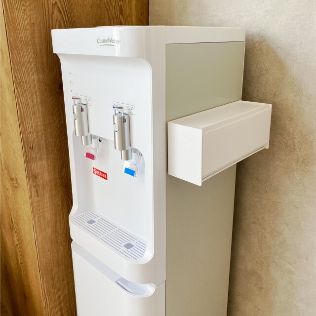 ウォーターサーバーの側面にマグネットでぴたっとくっつけられる「お薬&サプリメント収納ケース」。
